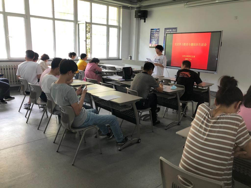 2021年7月9日中午12;30,自控系党总支教师党支部全体党员在创新学院一楼,召开了党史学习教育专题组织生活会,会议由支部书记谢海洋主持。